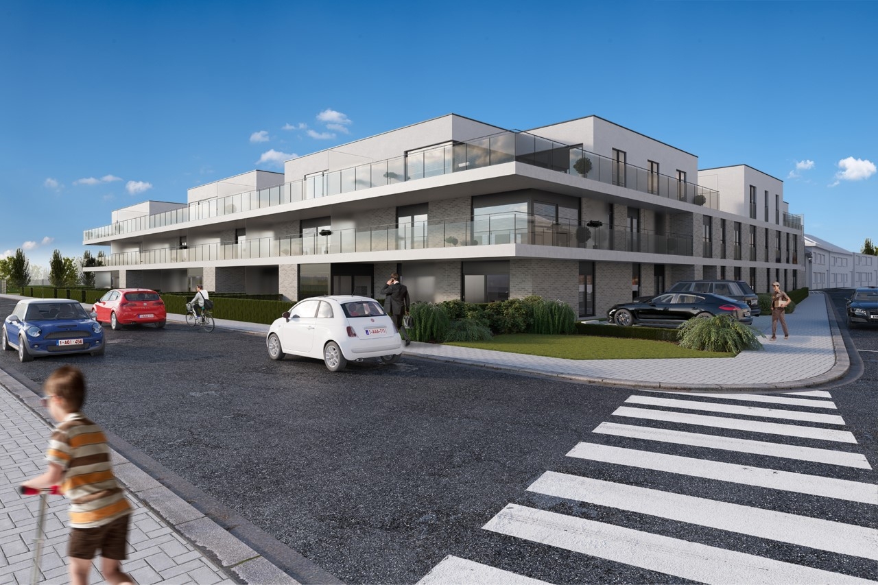 Gelijkvloers appartement met 23m² terras en 27m² tuin. Het appartement beschikt over 2 slaapkamers