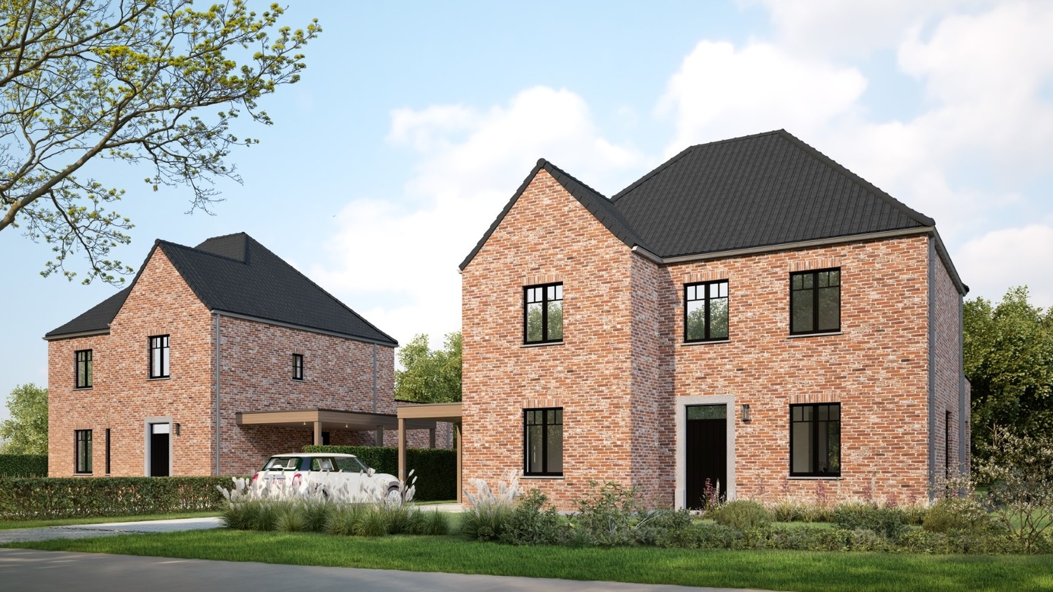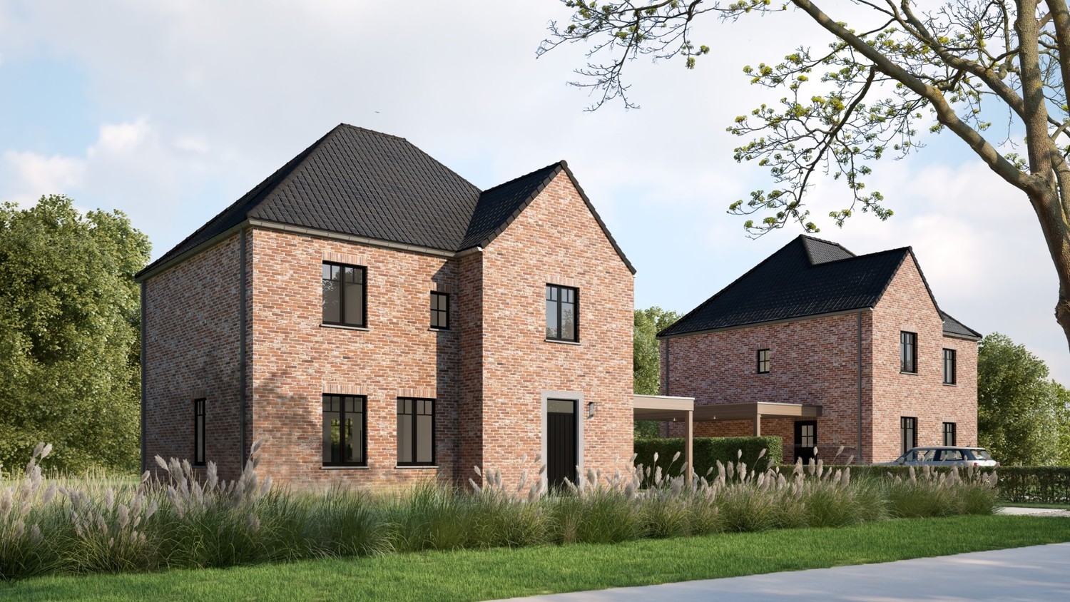 In de Nevelestraat in Lotenhulle bouwen we 2 ruime, landelijke woningen op grote percelen met een landelijk uitzicht op de velden.